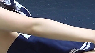 Girls Only Apartment in Japan, Skinny Girl Doing Seduce Fitness in Apron-type Mini Student Uniform, Thong Panties, White Socks
