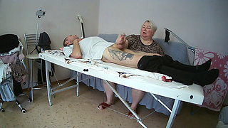 Mother-in-law Sucks and Jerks off My Dick on the Massage Table and Swallows Cum